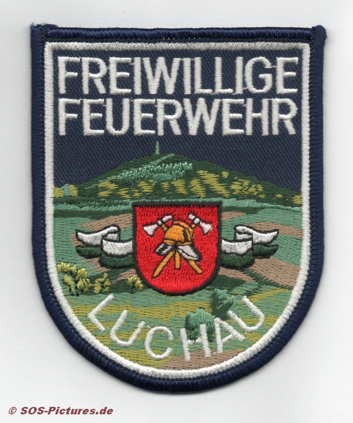 Abgebildet sind ein örtliches Motiv (Luchberg) sowie ein Feuerwehrsignet auf den sächsischen Farben weiß-grün.