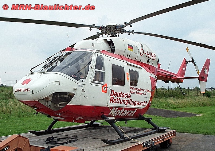 BK-117 B2 am Standort Flughafen Mannheim der DRF. Hier die Maschine noch in der alten Lackierung.