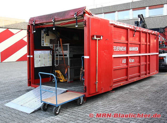 Der AB-Kran dienst mit seiner Beladung zur Unterstützung des Feuerwehrkrans.