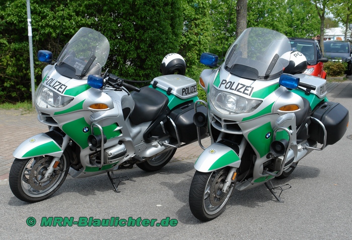 Zwei Polizeimotorräder der Polizei BW im Bereich Mannhein. |