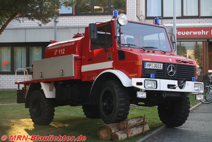 Das Sonder-TLF der Feuerwehr Bensheim. Aufgebaut durch die Firma Thoma auf einem Mercedes Benz Unimog U 1300L. |