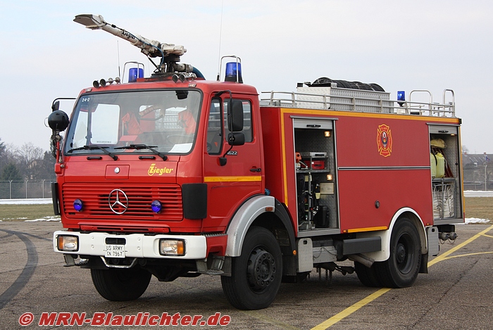 TLF 24/50 des US Fire Department Heidelberg auf MB 1622, Aufbau Ziegler. Der Monitor lässt sich aus dem Fahrerhaus bedienen. |