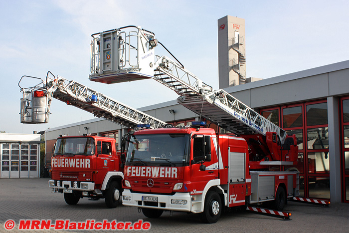 Die Alte und die Neue Drehleiter der Feuerwehr Weiterstadt.
