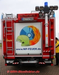 Besonders auffällig ist des Design des heckseitigen Rollandens. hier wurde das Logo eines Unterstützers der Feuerwehr angebracht.