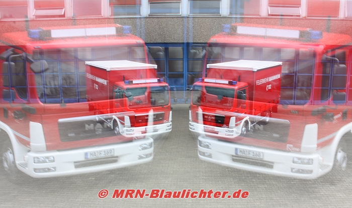 Zwei baugleiche LKW / GW-L der Berufsfeuerwehr Mannheim.