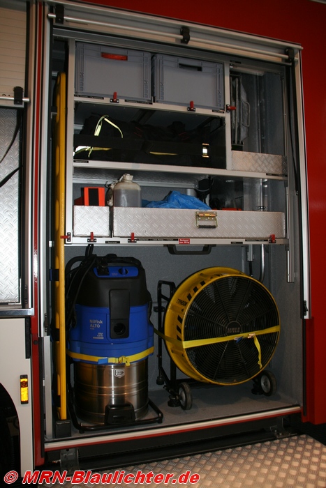 Im Mannschaftsraum wurden sechs Pressluftatmer in die Rückenlehnen integriert, wobei der Angriffstrupp zusammen mit dem Melder in der Wasser- und Schlauchtrupp entgegen der Fahrtrichtung sitzen. An der Kabinendecke ist ein großflächiges LED Lichtmodul für die Kabinenbeleuchtung angebracht.