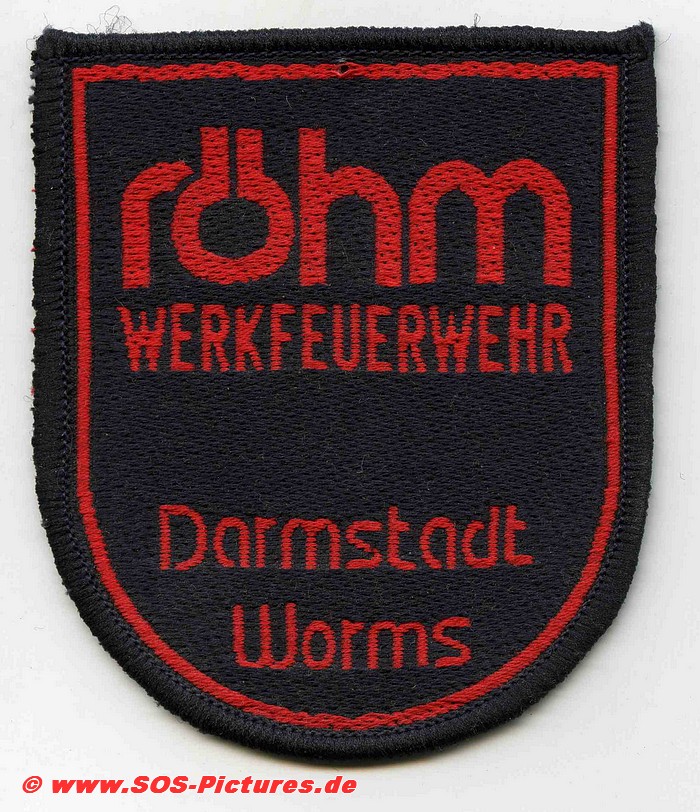 Ärmelabzeichen der Werkfeuerwehr Röhm in Darmstadt. |