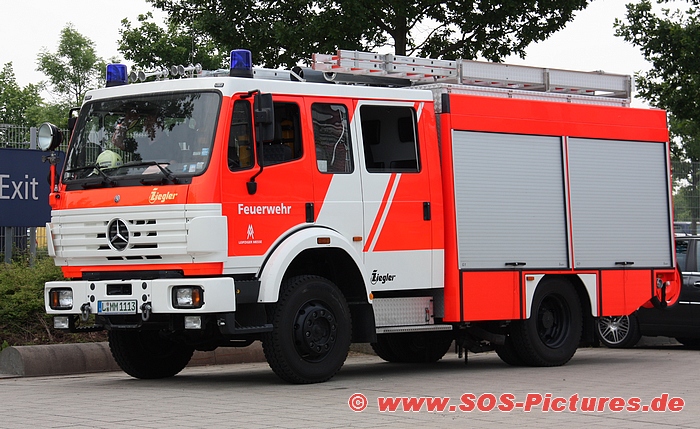 Hilfeleistungslöschfahrzeug HLF 16-12 der Werkfeuerwehr Leipziger Messe. Das Fahrzeug wird bei Großveranstaltungen mit Personal von der Feuerwache Nord der Berufsfeuerwehr Leipzig besetzt. |