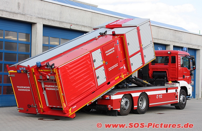 Der AB stammt aus einer Landesbeschaffung. Baugleiche Abrollbehälter bekamen die Feuerwehren Stuttgart / Karlsruhe / Heilbronn / Freiburg / Konstanz.