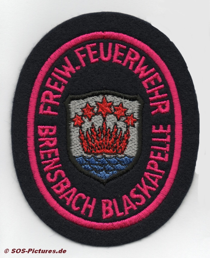 Ärmelabzeichen der Blaskapelle der FF Brensbach in rot.