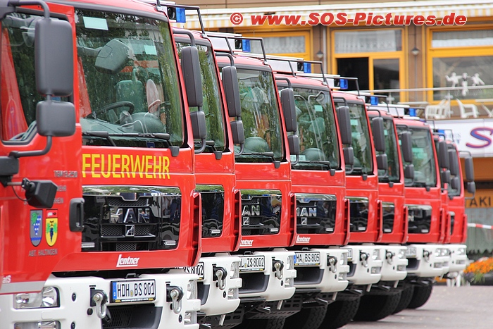 Übergabe von 16 LF KATS an Feuerwehren in Baden Württemberg in Pforzheim.