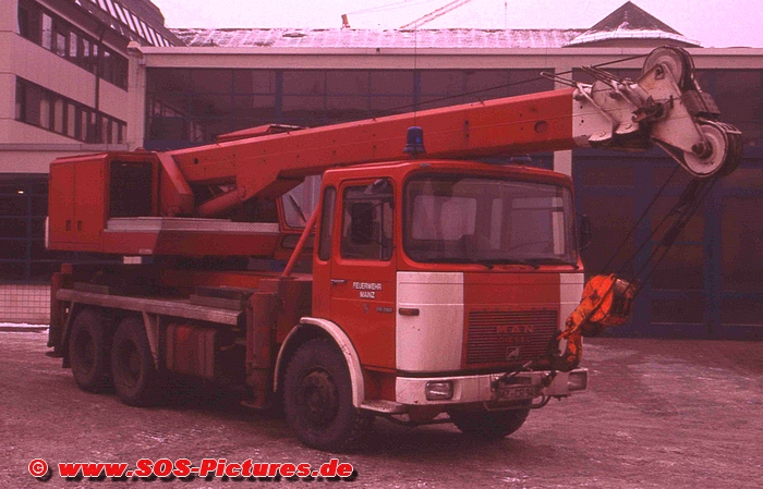 Ein Vorgängerfahrzeug (KW 16) musste 1981 ausgemustert werden. Das sich die Stadt nicht für den Kauf eines neuen FWK entscheiden konnte wurde dieses Fahrzeug bei einer Privatfirma gemietet. Tagsüber rückte der KW vom Firmengelände mit einem Fahrer der Kranfirma aus, Nachts und am Wochende stand er auf der Feuerwache und wurde dort mit Feuerwehrpersonal besetzt. |