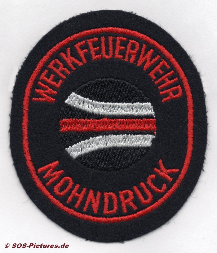Ärmelabzeichen der Werkfeuerwehr Mohndruck in rot.