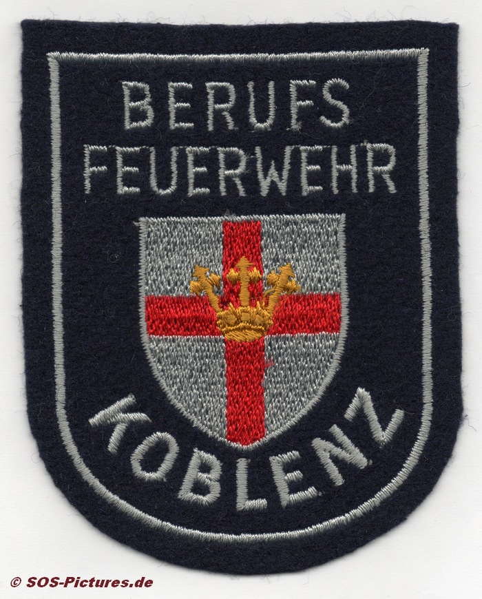 Ärmelabzeichen der Berufsfeuerwehr Koblenz in silber.