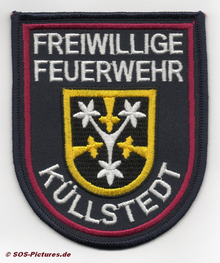 Ärmelabzeichen der FF Küllstedt in silber/rot.