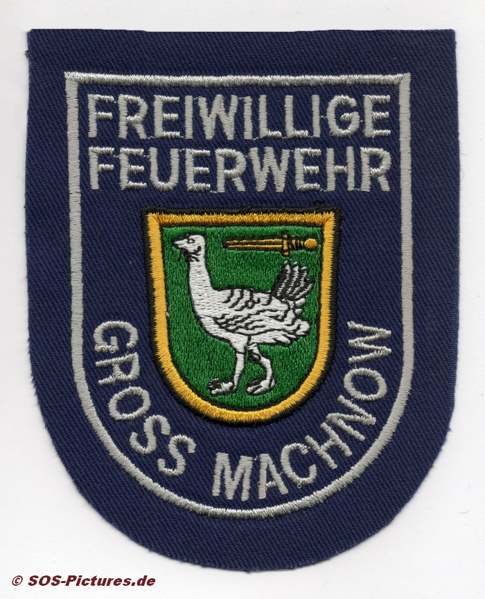 Ärmelabzeichen der FF Gross Machnow in silber.