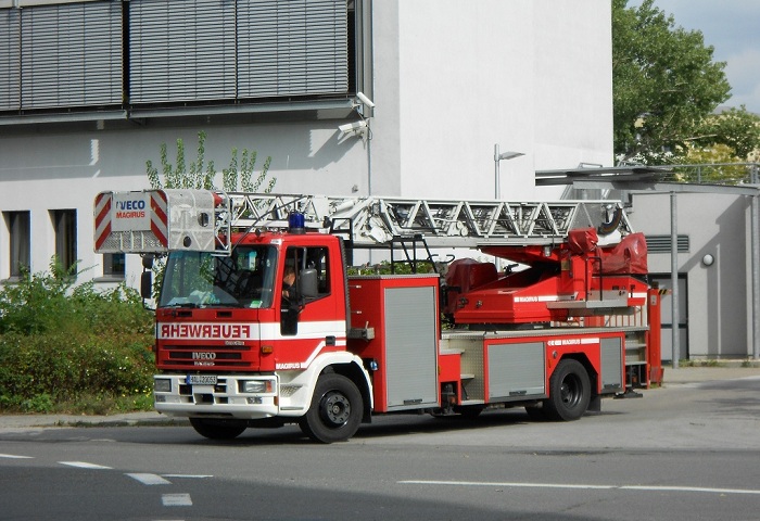 Drehleiter mit Korb (DLK) 23/12 cc GL, der Berufsfeuerwehr Halle(Saale). |