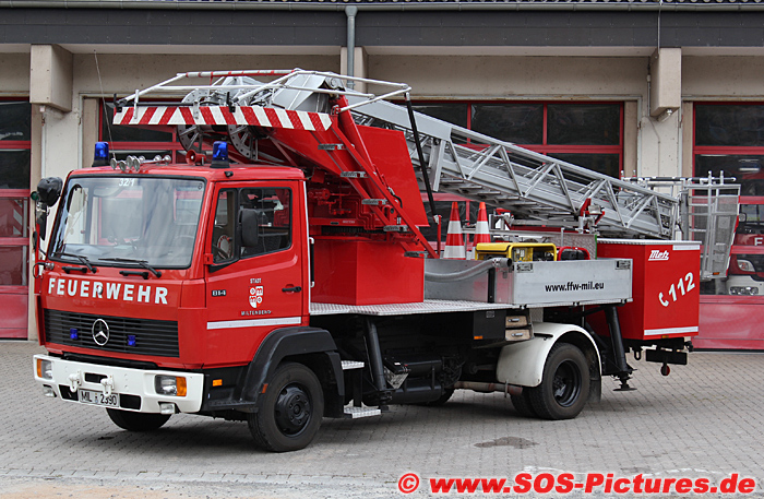 Drehleiter (DLK 16/4-SE) der Feuerwehr Miltenberg.