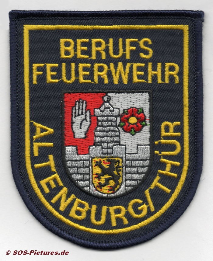 Ärmelabzeichen der Berufsfeuerwehr Altenburg/Thür. in gold.