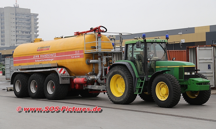 Sonderlöschfahrzeug (Traktor mit Schaumlöschanhänger )der Werkfeuerwehr John Deere in Mannheim.