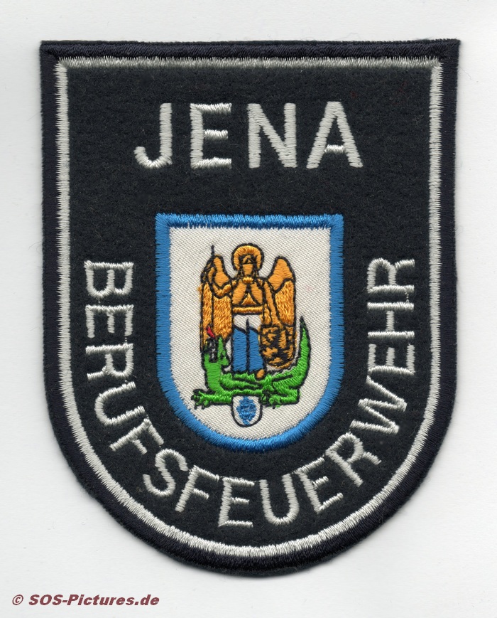 Ärmelabzeichen der Berufsfeuerwehr Jena in silber.