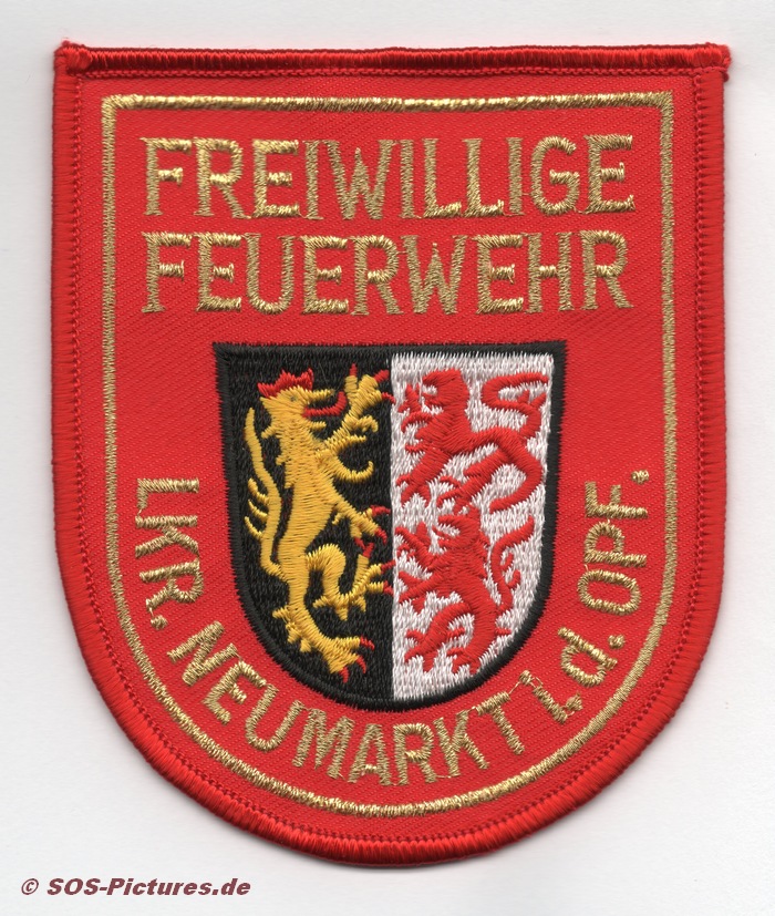 Ärmelabzeichen der FF Lkr. Neumarkt i.d.Opf. in gold-Lurex.