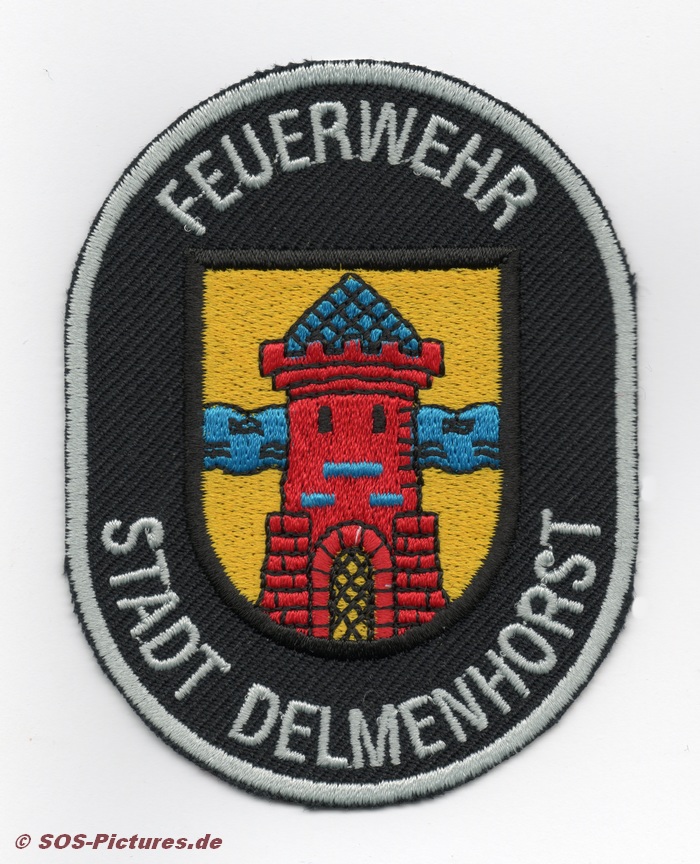 Ärmelabzeichen der Feuerwehr Stadt Delmenhorst in silber.