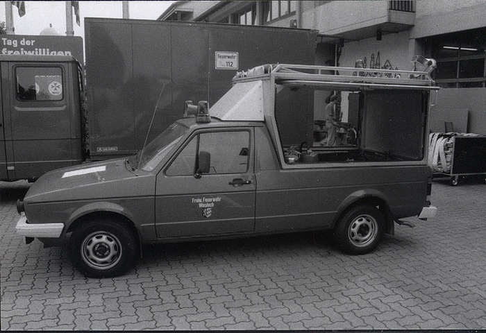 Mehrzweck- bzw. Transportfahrzeug der Fuerwehr Wiesloch auf VW Caddy. |