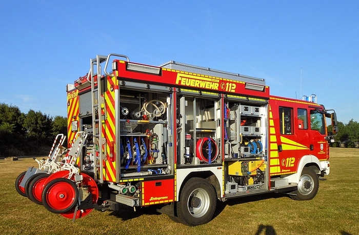 Hilfeleistungslöschgruppenfahrzeug (HLF) 20 der Freiwilligen Feuerwehr Straelen Löschzug Herongen, auf Basis eines MAN 13.290 TGM 4x4 BL und dem feuerwehrtechnischen Auf- und Ausbau durch die Firma Schlingmann.