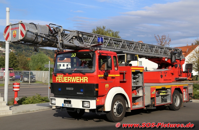 Hubrettungsfahrzeug (DLK 23-12) der Feuerwehr Büdingen.