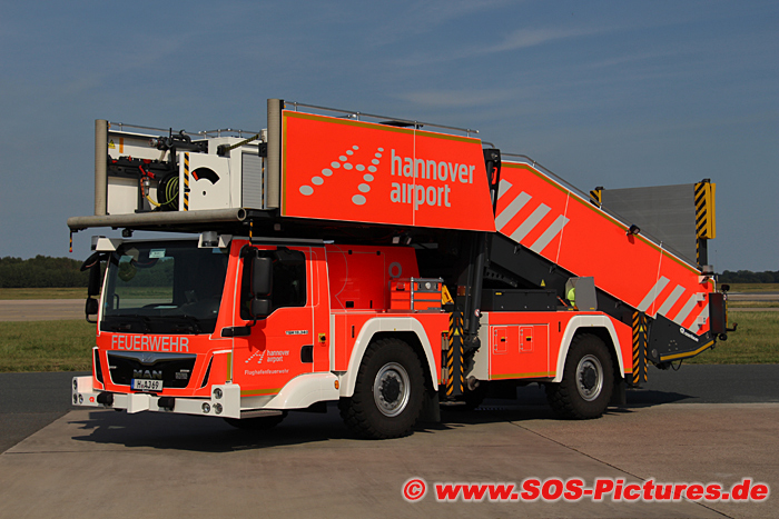 Rettungstreppenfahrzeug der Flughafenfeuerwehr Hannover.