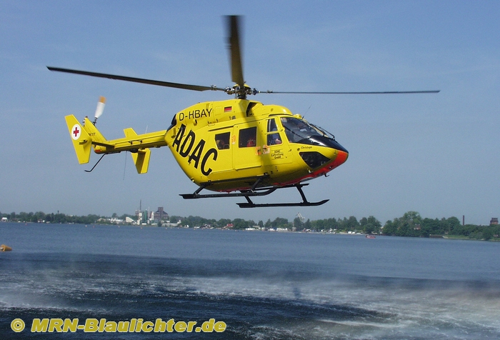 Rettungshubschrauber des ADAC. Aufgenommen bei einer Übung in Wilhelmshafen. Die dortige Maschine hatte noch keine Winde, deshalb kam dieser Heli für Übungszwecke.
