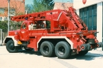 Feuerwehrkran KW - 15, Magirus - Deutz (Klöckner - Humboldt - Deutz) schwerer Eckhauber Uranus A (250 PS), hydraulisch betätigter Kranaufbau von Magirus. Die Reihe KW - 15 / KW - 16 / KW - 20 von Magirus gilt bei Fachleuten und Liebhabern unter den ohnehin schon beliebten Eckhaubern als die schönsten Fahrzeugserie. Es sind die \"Urviecher\" schlechthin. Sie waren wegen ihrer Robustheit, aber auch, weil sie beispielsweise unter den Fahrdrähten der Straßenbahnen einsetzbar waren, bis hoch in die neunziger Jahre im Einsatz. |
